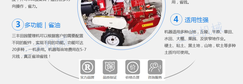 ,在國內(nèi)外享有盛譽。不僅要為客戶提供高性價比的產(chǎn)品田園管理機,更要為客戶提供合理 的設(shè)備選型,